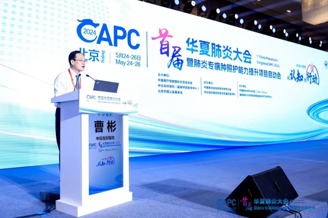 2024年5月25日上午,我国首届华夏肺炎大会(CAPC 2024)暨肺炎专病种照护能力提升项目启动会在京召开。本次会议由中国医疗保健国际交流促进会、中日友好医院(国家呼吸医学中心)联合主办。大会以“肺炎科学管理——从认知到行动”为主题,立足肺炎规范诊疗,重点聚焦肺炎诊断和治疗新技术、新进展、新药物、新方法,并正式启动肺炎单病种能力提升建设项目,发布《肺炎的基础与实践》一书,旨在提高我国肺炎的防诊治能力。大会由中日友好医院副院长、大会主席曹彬教授主持,韩德民院士代表中国医疗保健国际交流促进会致辞。王福生院士、夏宁邵院士、卞修武院士、刘又宁教授、瞿介明教授及全国各界同道1000余人线下出席了本次盛会。会议共设12大版块,85场报告,线上观看人数超23万人次。